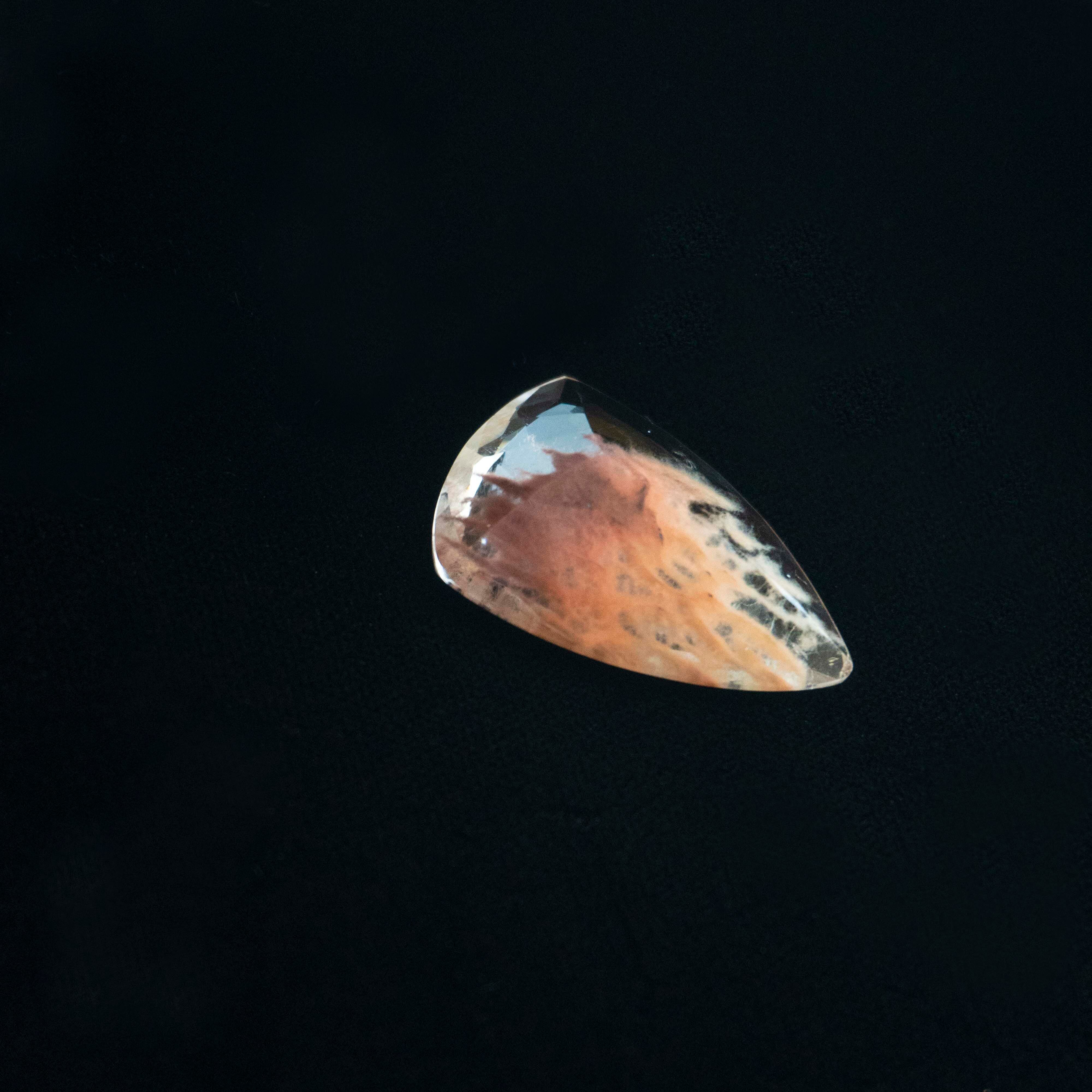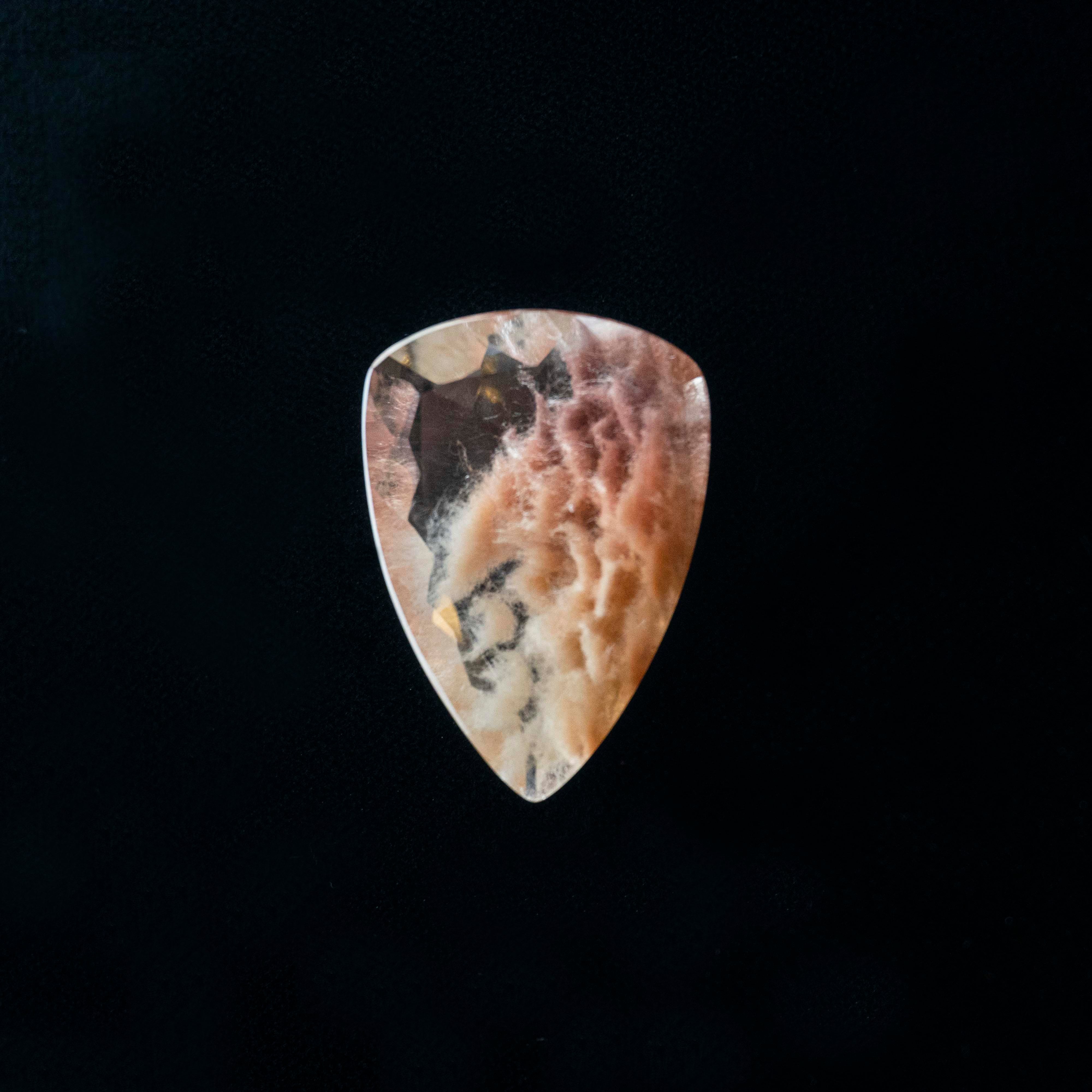 このルースに施されたファセットカット(平面カット)は、単なる美しさのためだけではありません。 カボション(丸い磨き)がエネルギーを優しく「広げる」のに対し、ファセットカットはエネルギーを強力に「増幅」し「集束」させる役割を持ちます。